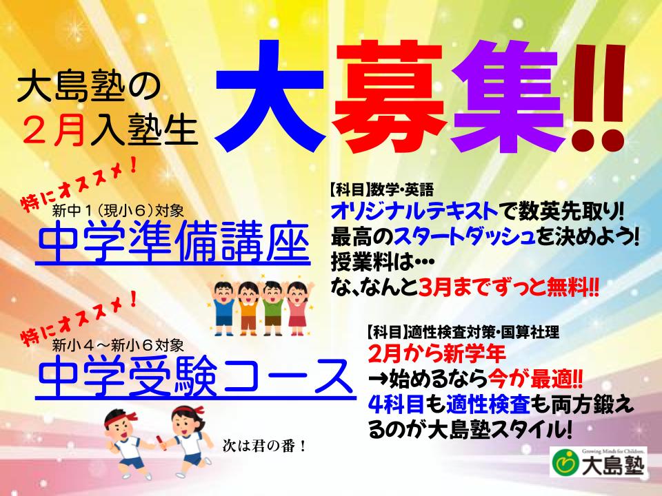 ・【中学受験クラス】2月より新学年スタート!