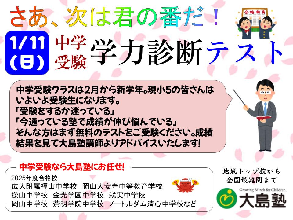 ※公開テストの情報は大島塾HPの新着情報よりご確認ください